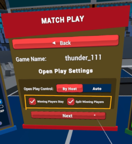 Open Play lets up to 8 participants join a match — 4 players actively playing and 4 spectators waiting for their turn. It’s designed to make matches more fun and fair by rotating players automatically or manually.